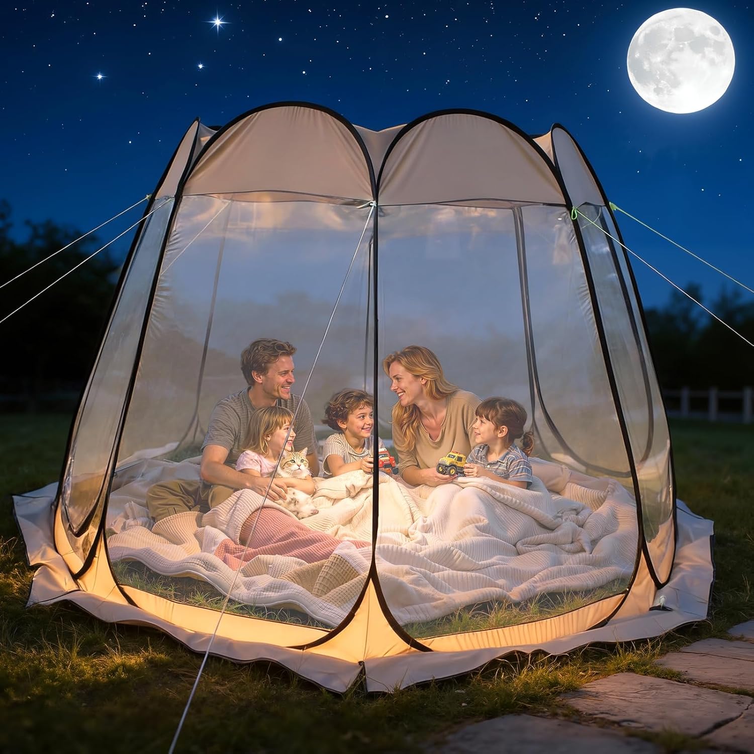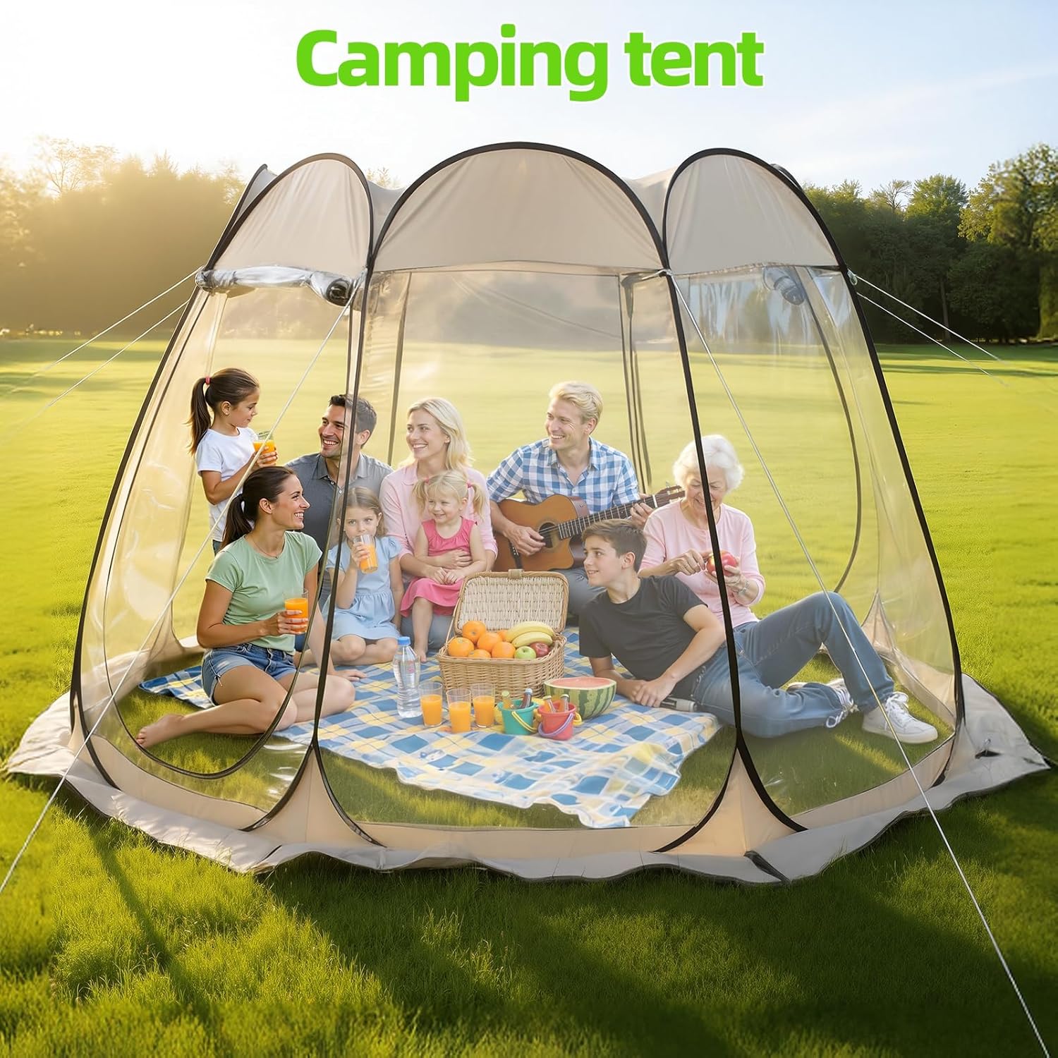 Description:Create a bright, comfortable, and protected outdoor space with this clear bubble tent. Designed with transparent panels for a wide surrounding view, it allows you to enjoy backyard gatherings, picnics, camping, and stargazing while staying sheltered from outdoor conditions.The pop-up design makes setup fast and convenient without complicated assembly, so you can quickly create a usable outdoor dome shelter for family activities, parties, or relaxing time outside. When not in use, it folds down for easier storage and transport.With a spacious 118" x 114" x 75" interior, this outdoor bubble tent offers enough room for multiple people to sit comfortably. The built-in vent window helps improve airflow and supports a more pleasant interior environment during extended use.Constructed with clear PVC panels, PU4000 Oxford cloth, and fiberglass support poles, this transparent dome shelter is made for dependable outdoor use. Whether placed in the backyard, patio, campsite, or picnic area, it provides a practical combination of visibility, comfort, and convenience.Perfect for backyard parties, patio relaxation, camping, outdoor viewing, and stargazing, this clear bubble tent creates a sheltered space that still feels open, bright, and connected to the outdoors.Item Name: Pop Up Bubble TentMaterial: PlasticSize Details:Unfold Tent Size: 118.11" x 114.17" x 74.8" (Approx.)Folding Size: 33.86" x 33.86" x 3.15" (Approx.)Octagon Side Length: 35.43" (Approx.)Package Includes:1 x Pop Up Bubble Tent 1 x English Instruction Manual